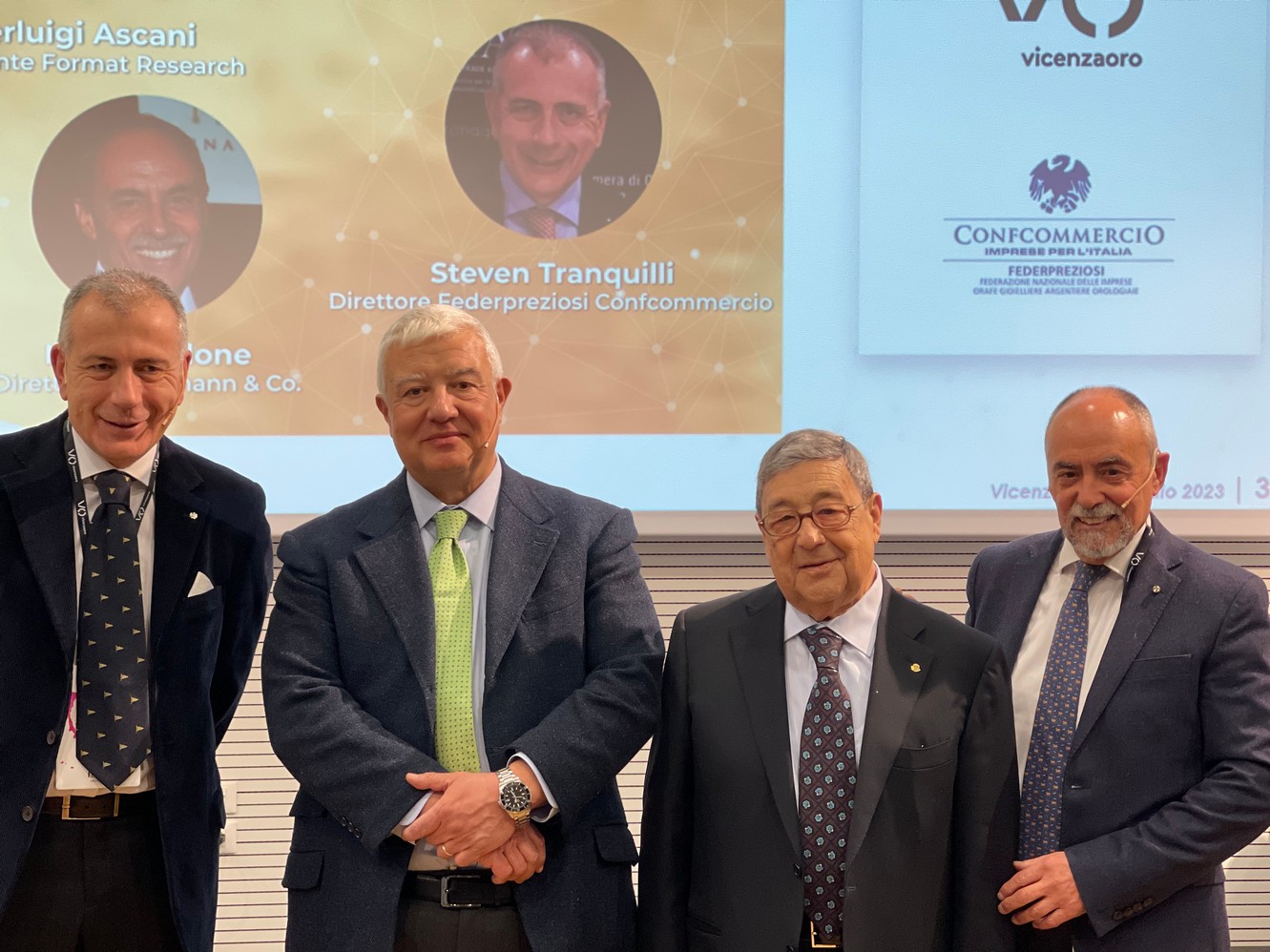 All’incontro, moderato da Steven Tranquilli, direttore di Federpreziosi Confcommercio, hanno preso parte: Pierluigi Ascani, presidente di Format Research; Mario Didone, direttore di Hausmann & Co.; Steven Tranquilli, direttore di Federpreziosi Confcommercio.