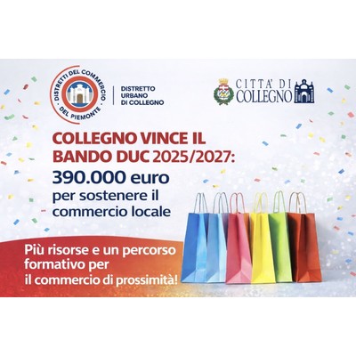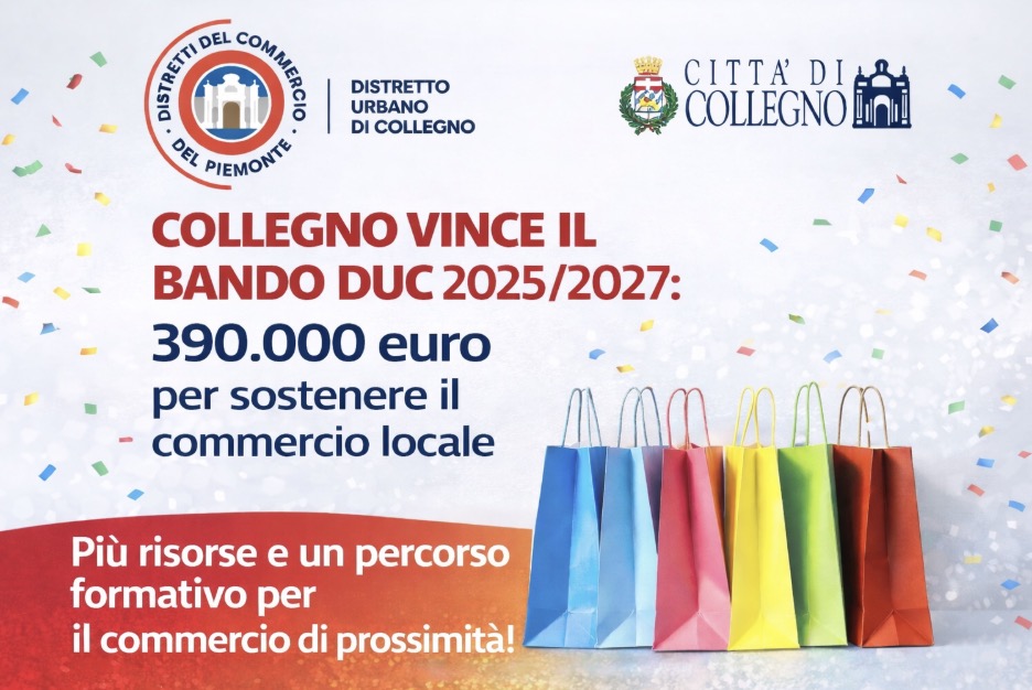 Collegno centra un risultato importante per il commercio di prossimità: il Distretto Urbano del Commercio (DUC) ha vinto il Bando DUC 2025/2027 e potrà attivare nuove azioni a sostegno delle attività del territorio, con un investimento complessivo di circa 390.000 euro, di cui circa 290.000 euro come contributo regionale. Un’opportunità concreta per rafforzare la rete commerciale cittadina, valorizzare le imprese locali e accompagnare l’evoluzione dei servizi e dell’offerta rivolta a residenti e visitatori.