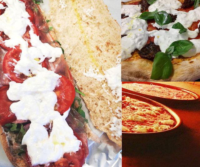 Pizza a lievitazione naturale con maturazione 48/72 ore, con farine non raffinate macinate a pietra. Impasti speciali, impasti d'autore, farro, semintegrale di tipo 2, integrale, 9 cereali, kamut bio100%, farinata di Pegli, paposcia, specialità tipica di Vico del Gargano.