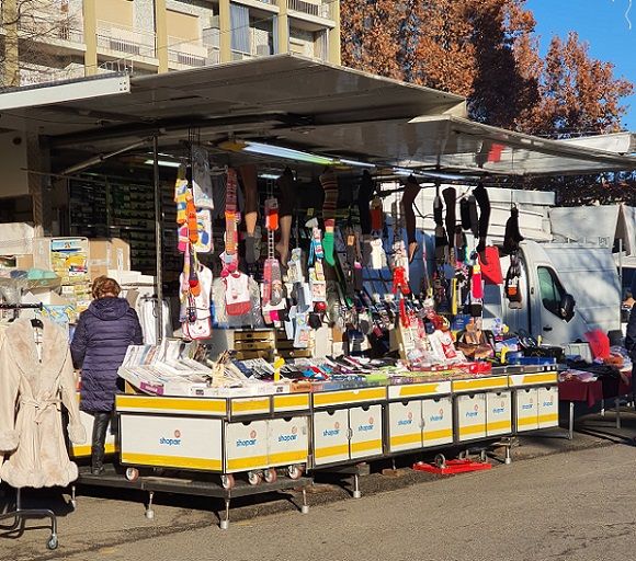 Auto-negozio con insegna "Shopair" specializzato in calzetteria (calze di ogni tipo: uomo, donna, bambino e baby) ed intimo uomo e bimbi. Piazzato tutti i giorni della settimana in Corso Filippo BRUNELLESCHI a Torino, in corrispondenza dei seguenti numeri civici: Lunedì: fronte 21 angolo./via Fattori -- Martedì fronte 14/A -- Mercoledì fronte 4B -- Giovedì fronte 24 -- Venerdì fronte 18 -- Sabato fronte 1A Fiori e produttori