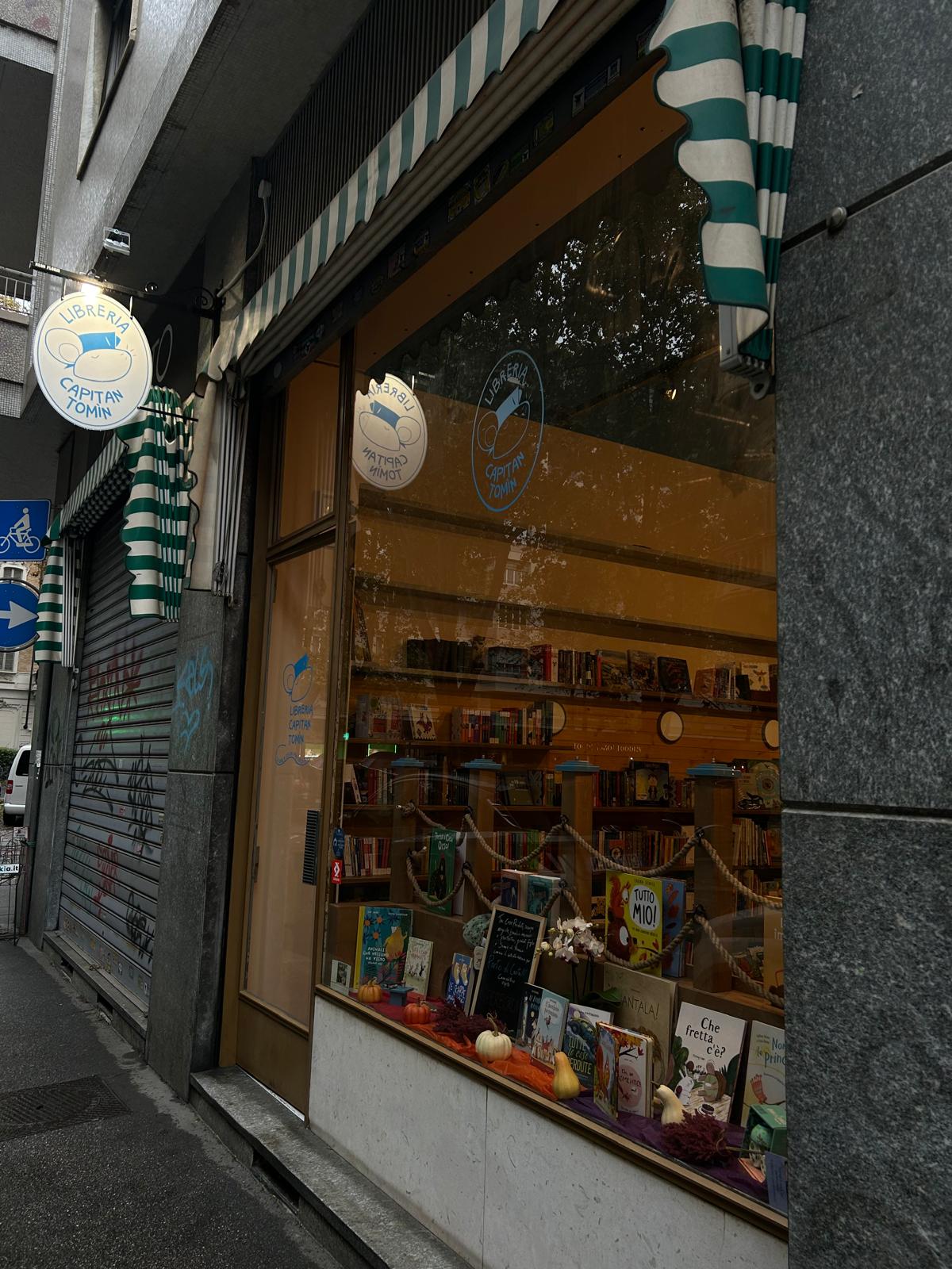 La libreria Capitan Tomìn, un tempo latteria di quartiere, apre i battenti a settembre 2024 ed è il covo di un coraggioso topino sempre alla ricerca di storie, libri e giochi per i più piccoli.