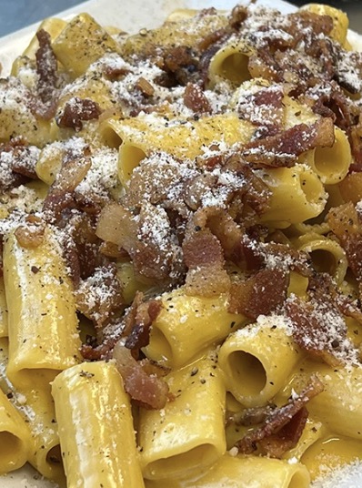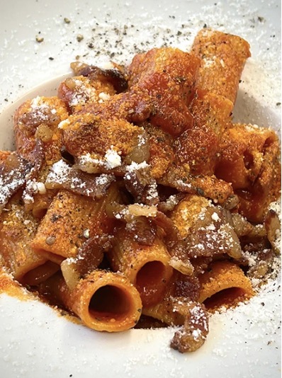 Nell’Amatriciana d’estate, ad esempio, sostituisce il pomodoro con il pomodorino giallo.