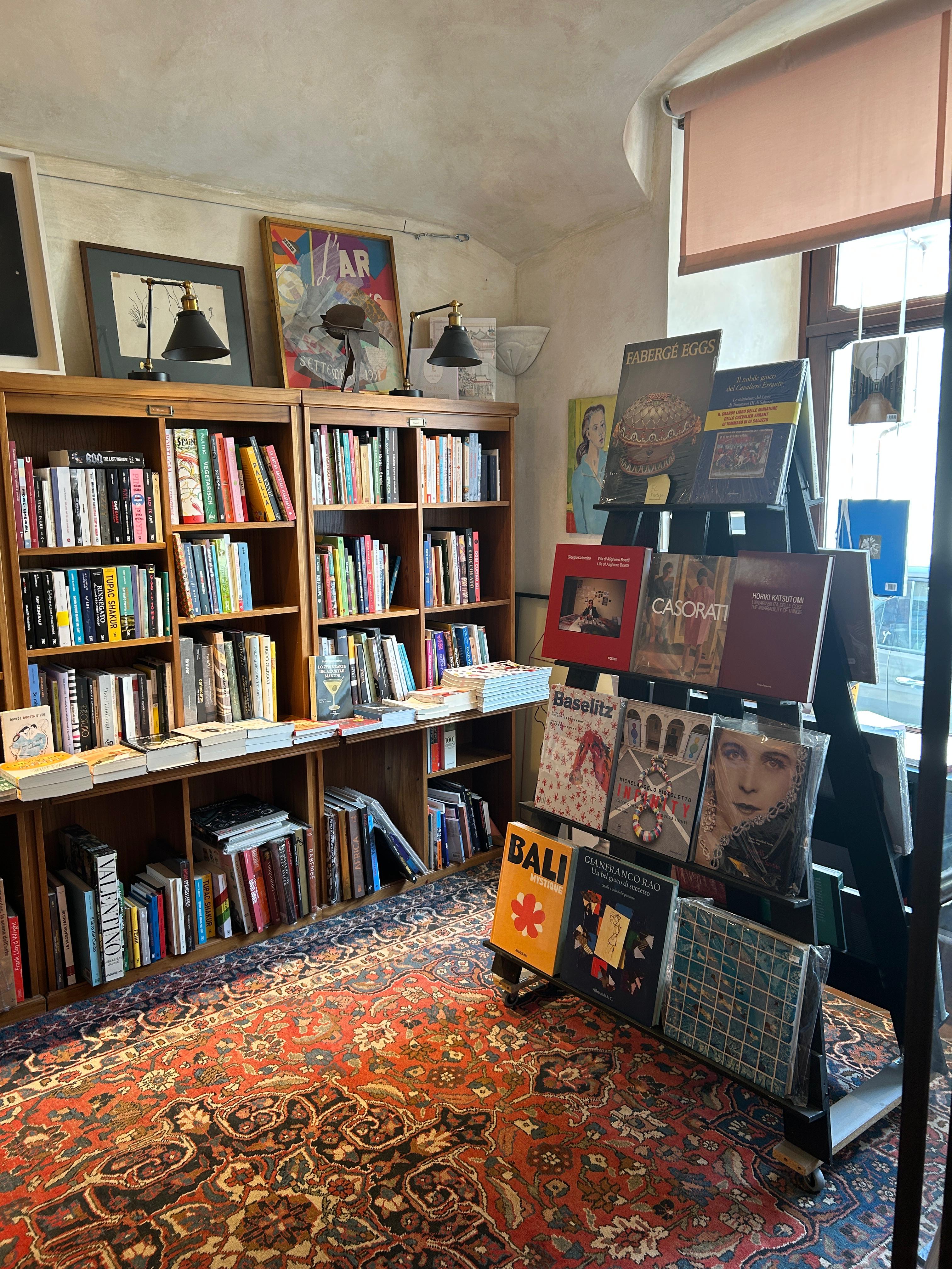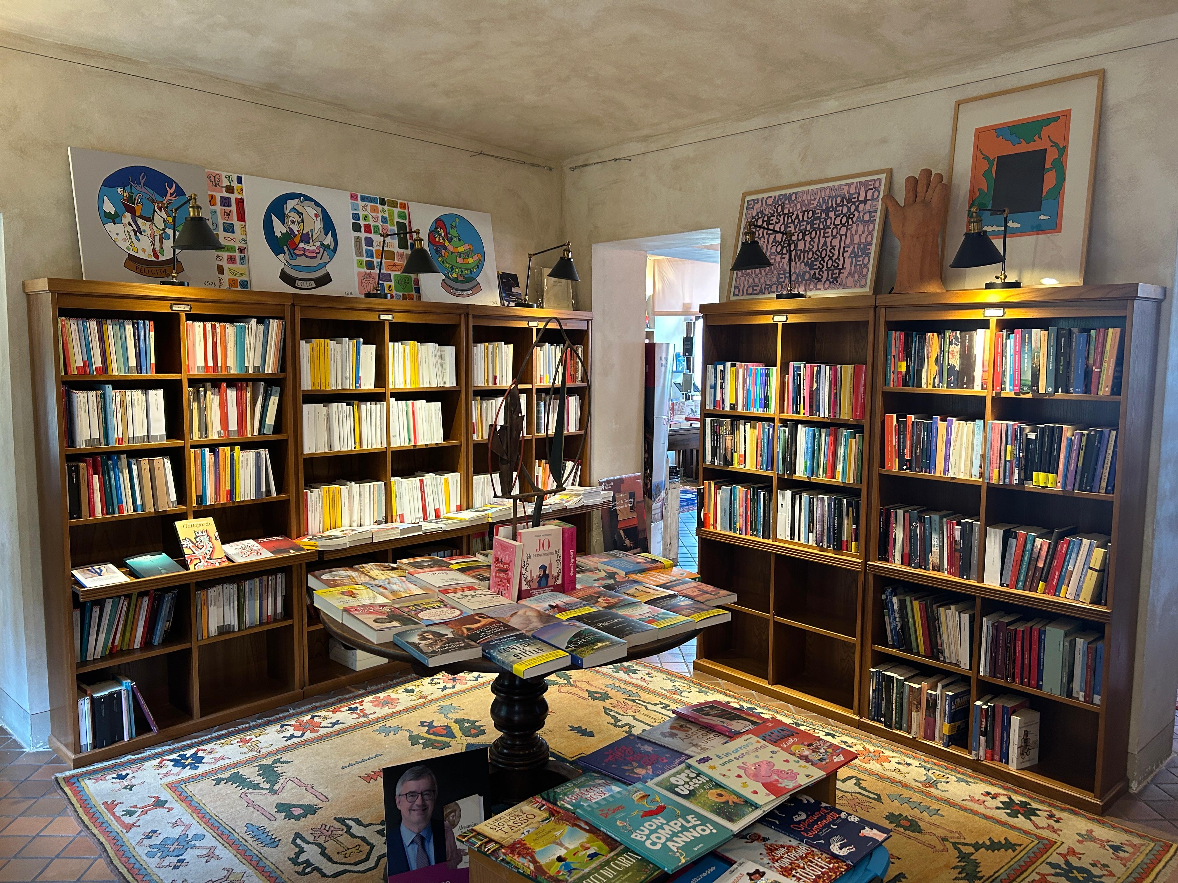 La libreria, divisa in più ambienti ricchi di calore e di arte, offre una ricca scelta di novità e catalogo di narrativa e saggistica di piccoli e grandi editori. E poi un'ampia sezione dedicata ai lettori del futuro (dall'età prescolare agli "young adults"), e ancora libri dedicati all'arte, al design, all'architettura, alla cucina ed un'interessante selezione di volumi dedicati alla spiritualità (dalla filosofia orientale ai tarocchi).